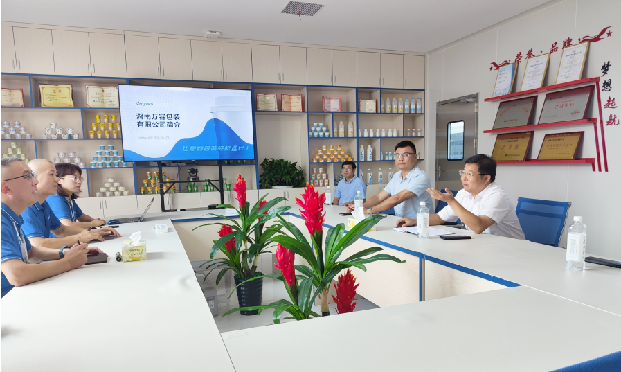 炎炎早秋日,殷殷關懷情。8月11日,寧鄉市副市長宋強率市政府辦、工信部門負責人一行來到湖南省首家數字化食品接觸性包裝材料代表性基地–湖南萬容包裝有限公司開展調研;就落實省委“送政策、解難題、優服務”的行動要求等深入企業進行調研。萬容包裝公司總經理李濟成,副總經理黃志雄進行了熱情接待和現場陪同。
